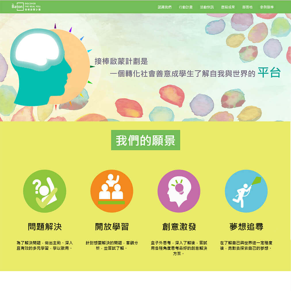 接棒啟蒙計畫官網,後台使用WordPress,主要工作是開發佈景主題